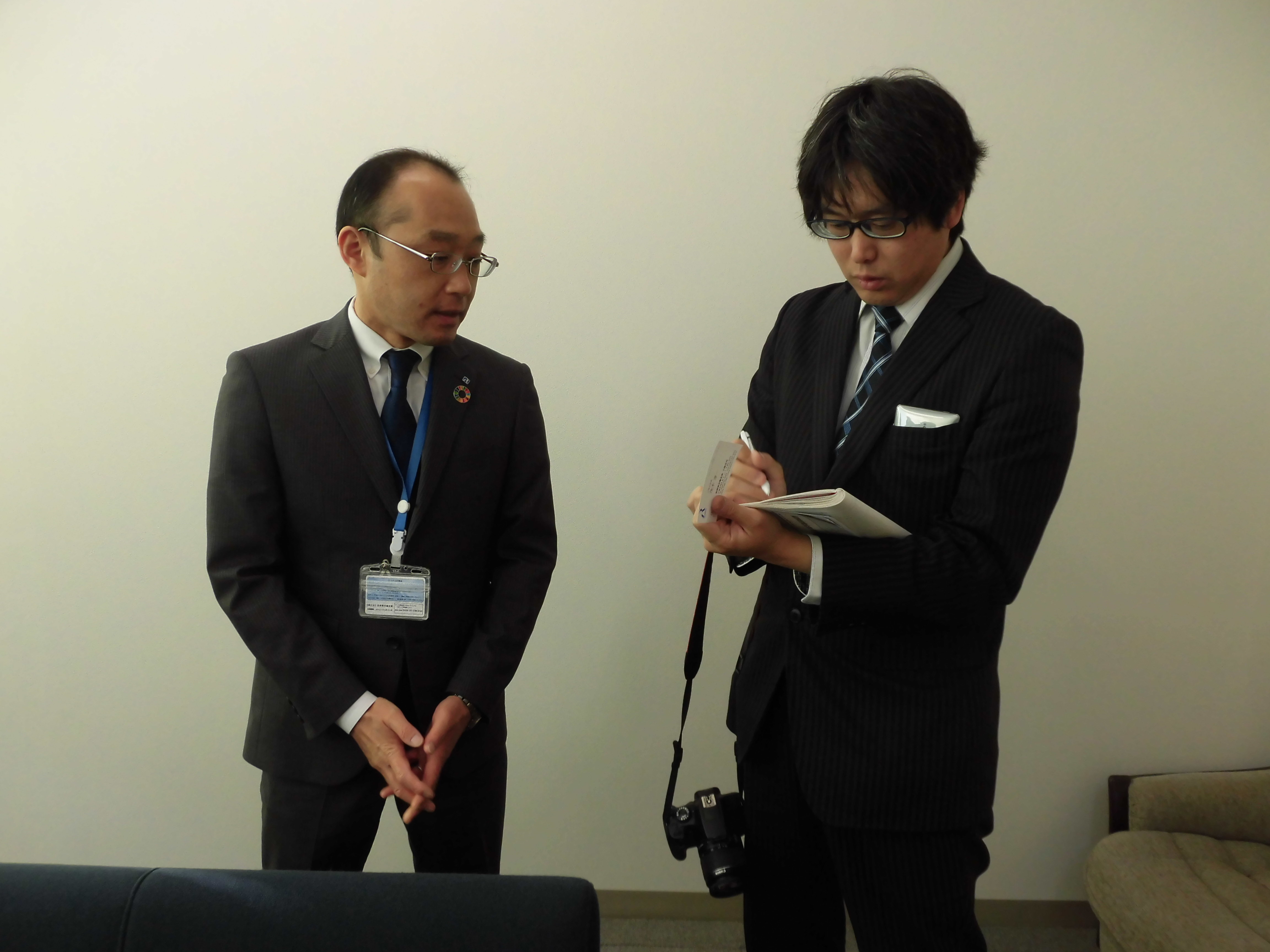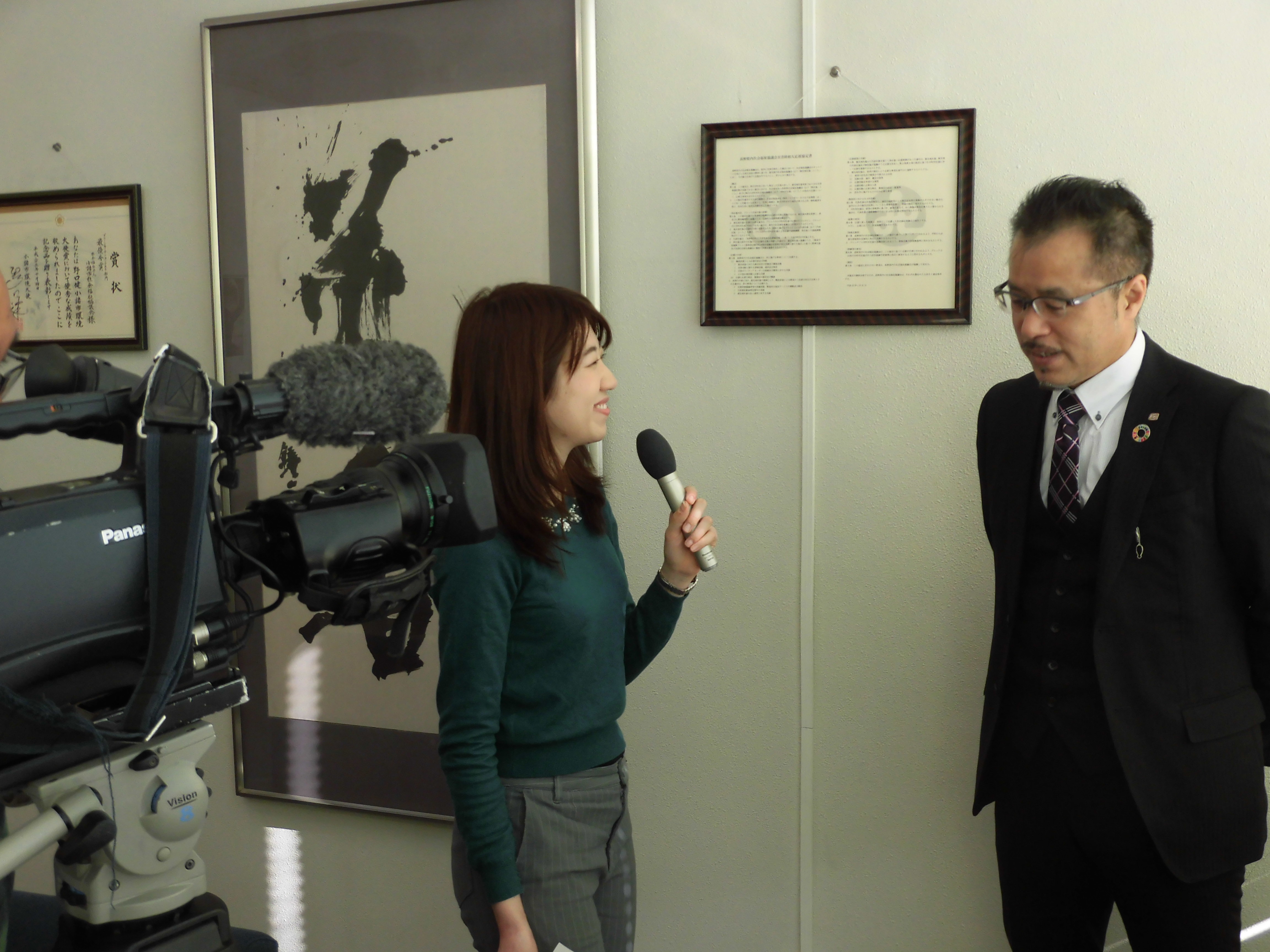 ※写真は地元テレビ局・新聞社のインタビューを受ける岩崎運営委員長・茂木支店長