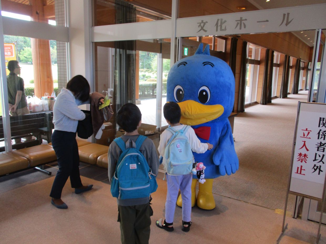 ホール入り口では、大人気の「ロッキー」が、子供達をお出迎え。ここ毎年ロッキー役のH運営委員は、仕草・所作も職人の域に達して