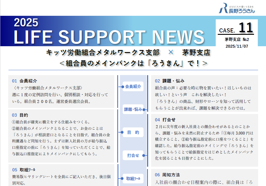 会議後半では、会員でのろうきん運動の好事例報告として、諏訪三社電機労働組合での「NISA利用者へのアフターフォロー」とキッツ労働組合メタルワークス支部の