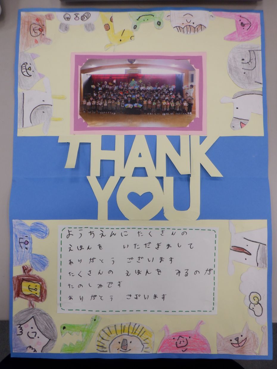 元気いっぱいな園児達に喜んでいただき、大変嬉しくなりました。子どもたちにはたくさんの本を読んで色々なことに興味や関心をもっていただければ幸いです。