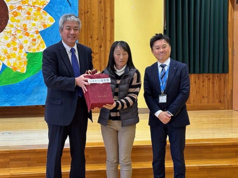 中野支店の目の前の「ひまわり保育園」さんに訪問し贈呈式をさせていただきました。