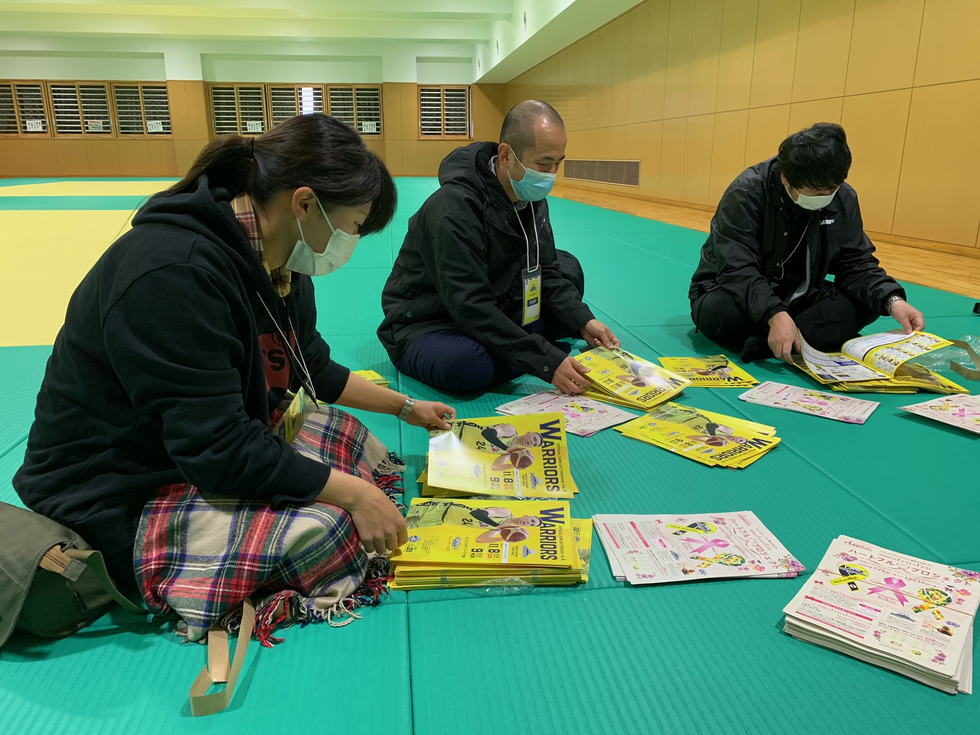 試合開始は14時からですが、11時半から入場が開始され、多くのブレイブウォリアーズファンの方たちにプログラムをお渡しすることが出来ました。