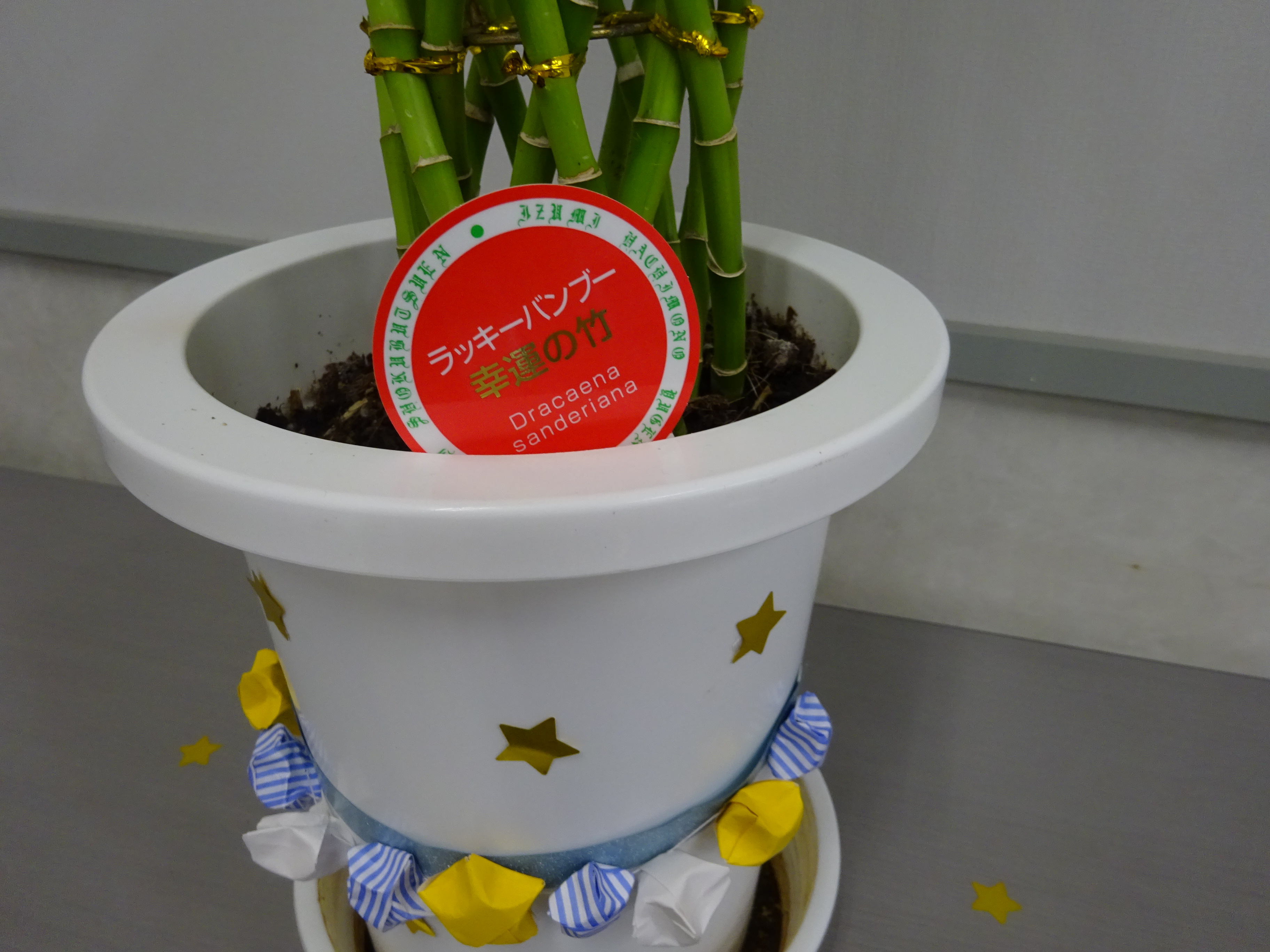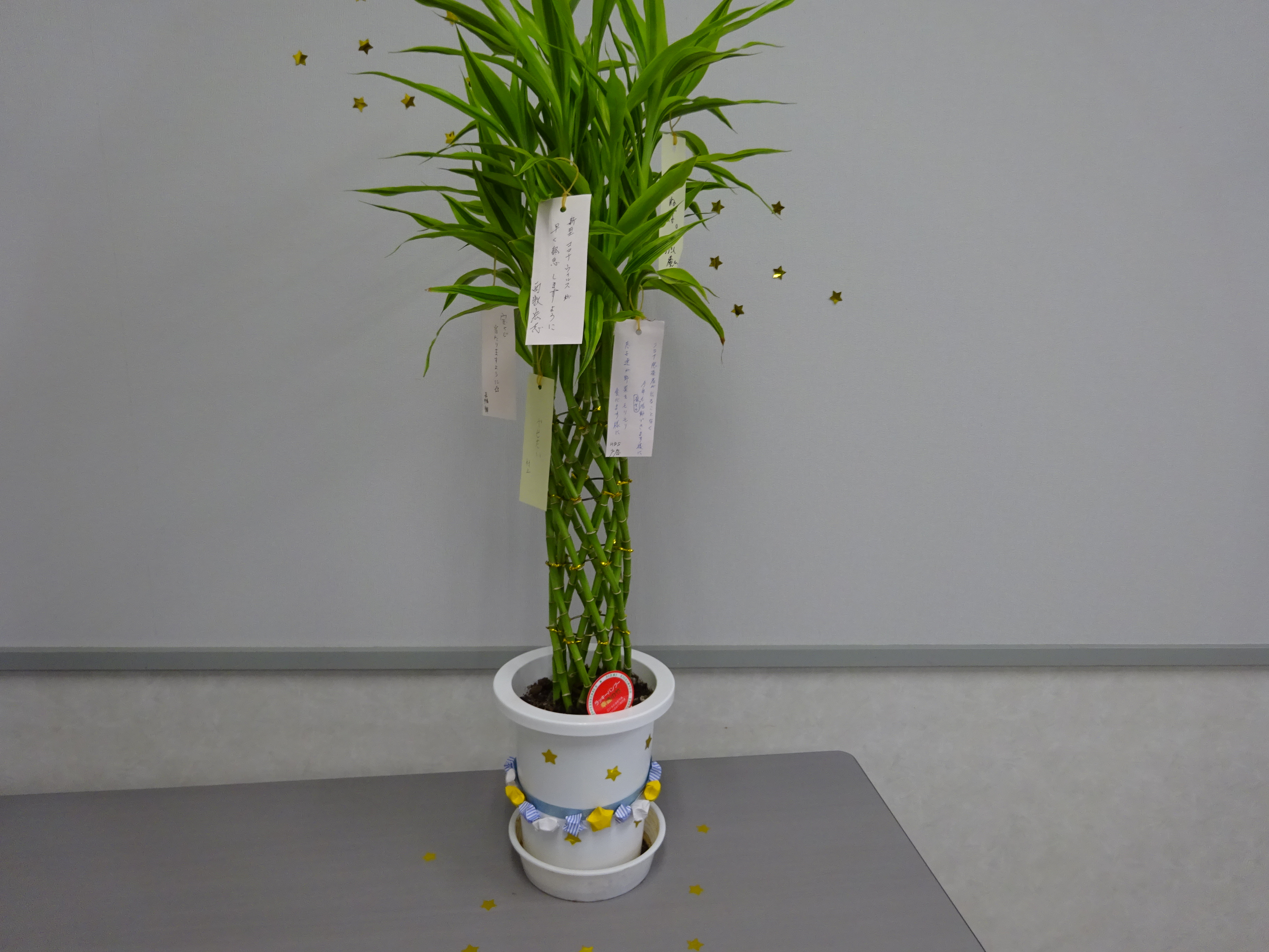 「幸運の竹」を活用し、七夕飾りを行いました。