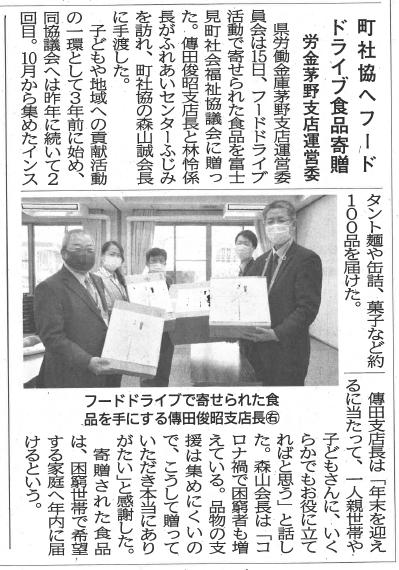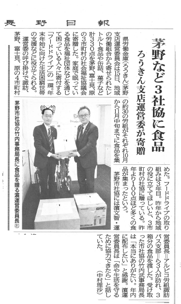 茅野支店運営委員会では、自主活動の一環としてフードドライブ活動を行いました。