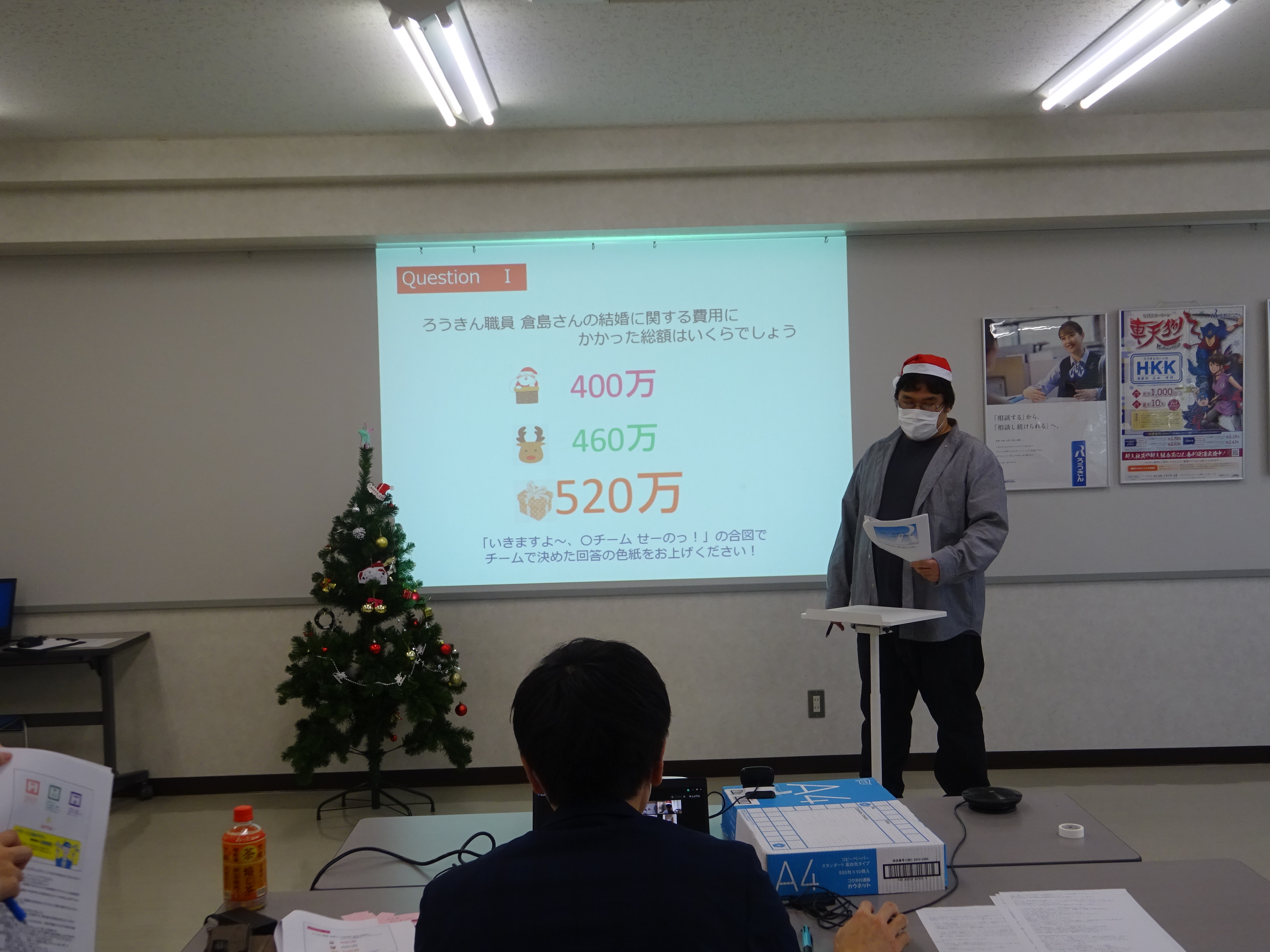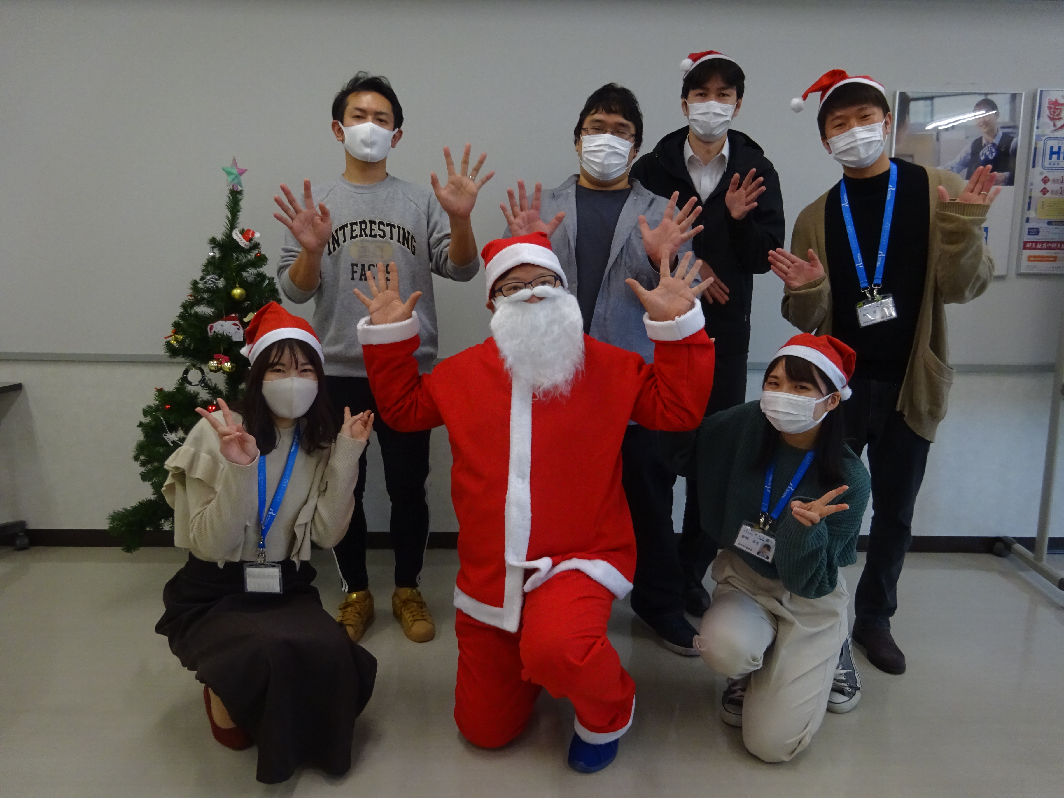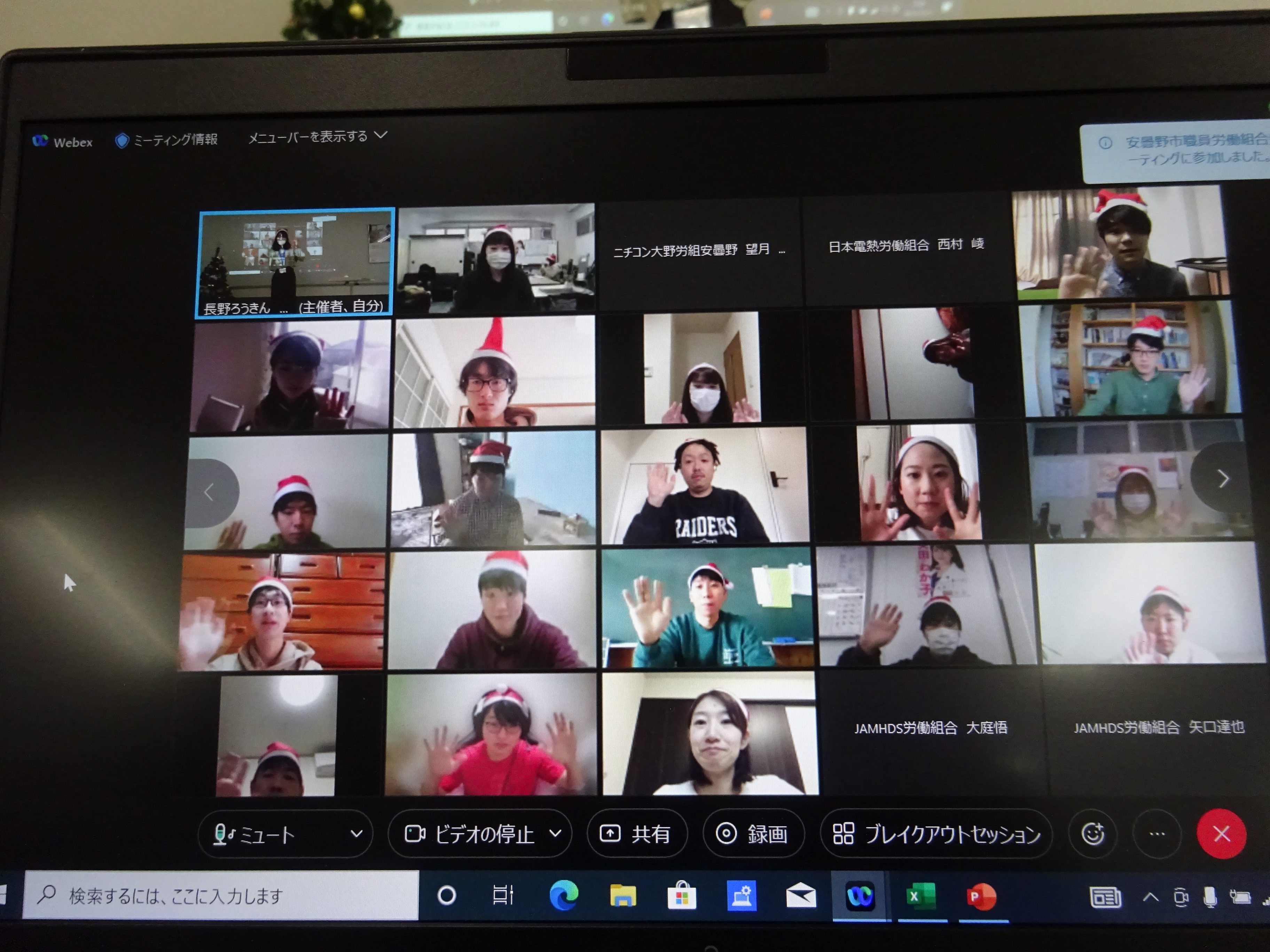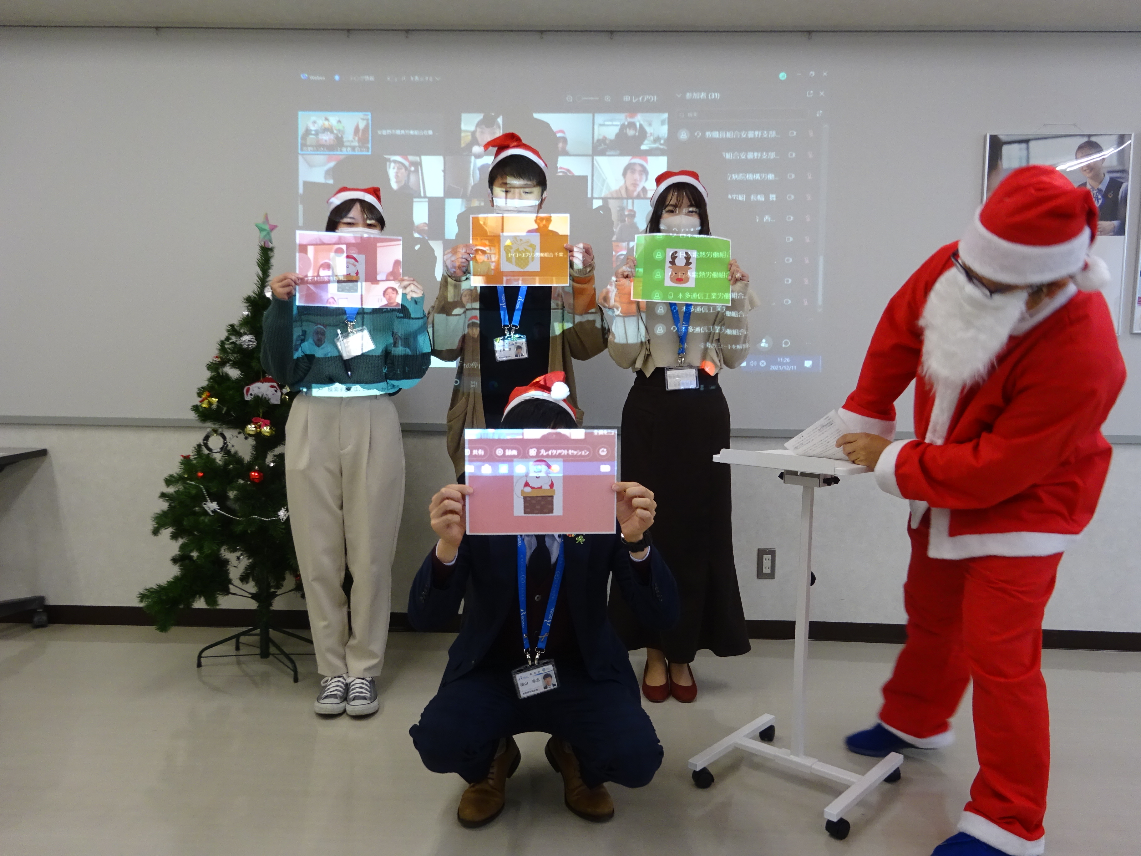 クリスマス要素を盛り込み、少しでも参加者の皆さんにお楽しみいただけるようにと且つ、WEB形式という同じ空間にいない中でも一体感を醸成できるようにと全員でおそろいのサンタ帽を被り行いました。