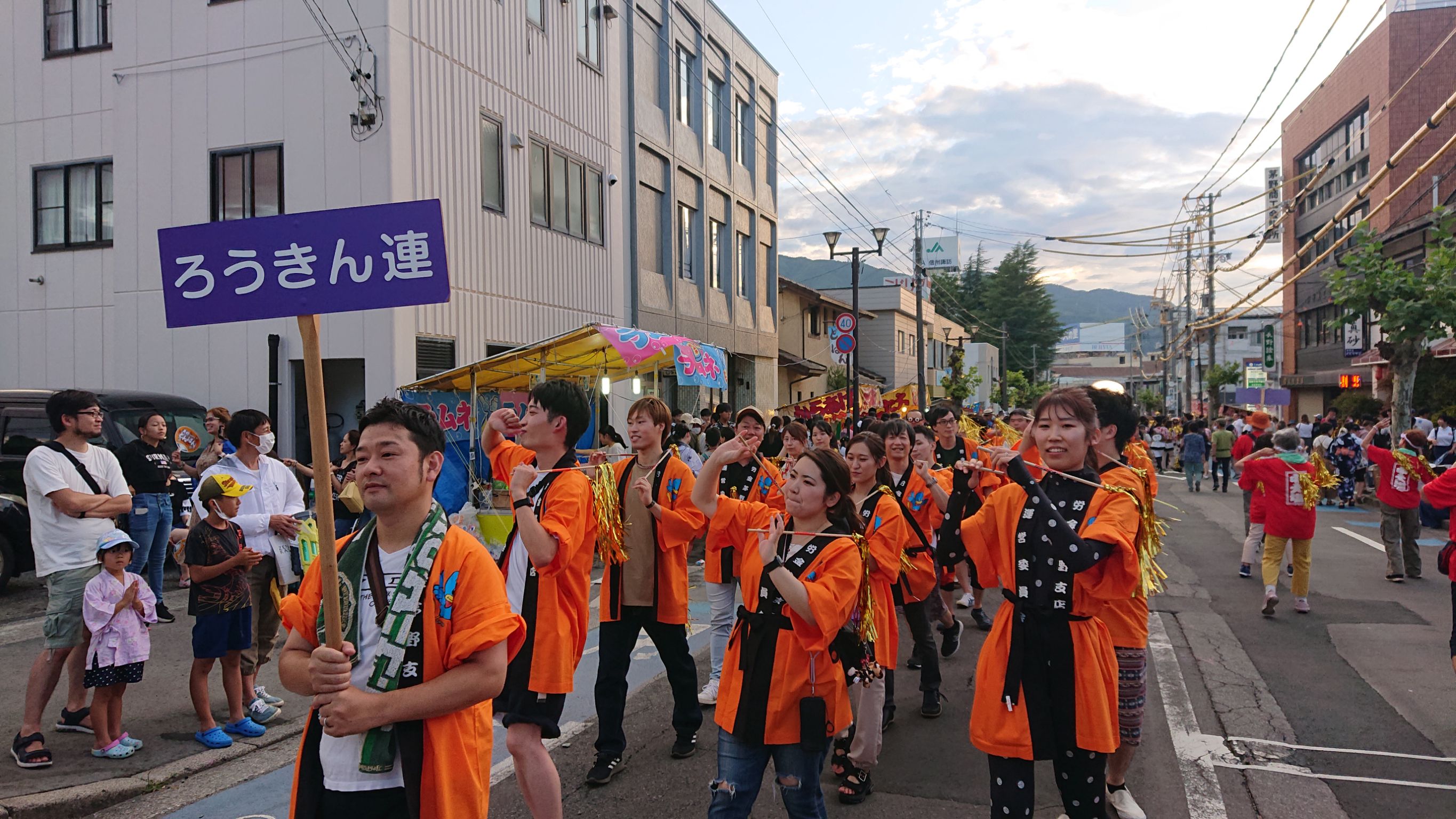 8月5(土)、茅野市のお祭り「ちのどんばん」が開催され、茅野支店運営委員会では、夜の踊りに「ろうきん連」として参加しました。当日は運営委員の他、青年・女性委員、会員執行部、組合員総勢約40人が集まり、約2時間熱心に踊りました。
