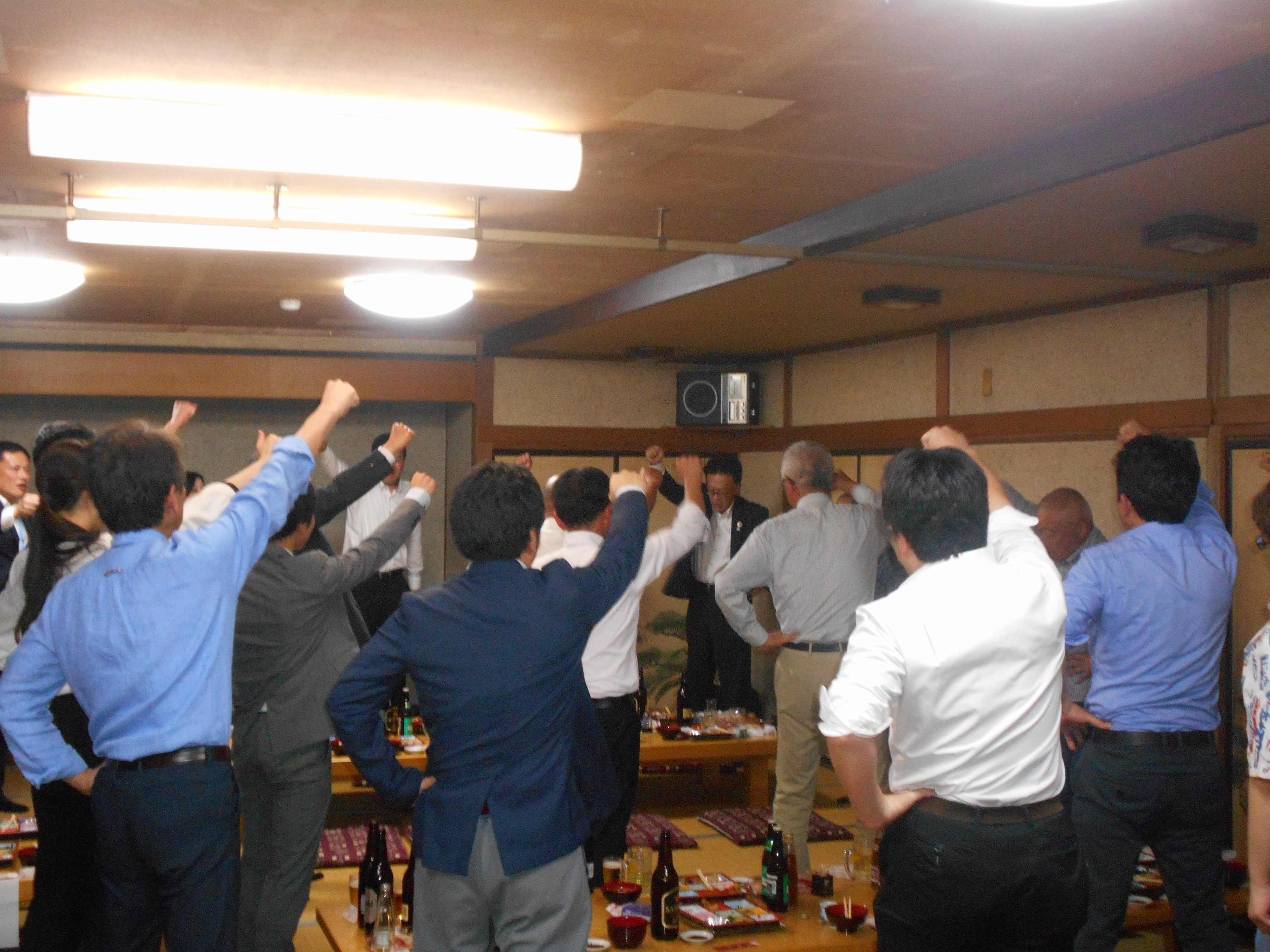 また、会議終了後の懇親会では、会員労働組合の皆さんと団結力を深め、恒例の「団結ガンバロー!」で丸子支店らしく締めくくりました。