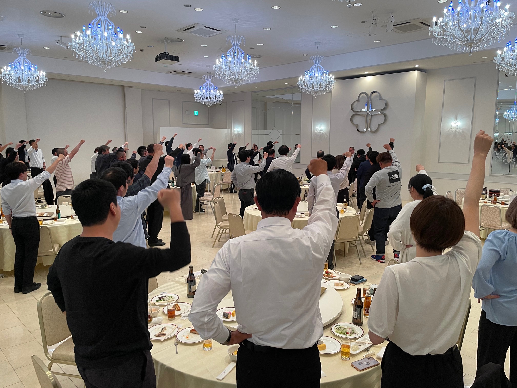 会議終了後は懇親会を行い、お互いの親睦を深めるとともに団結ガンバローにて結束を確認しました。