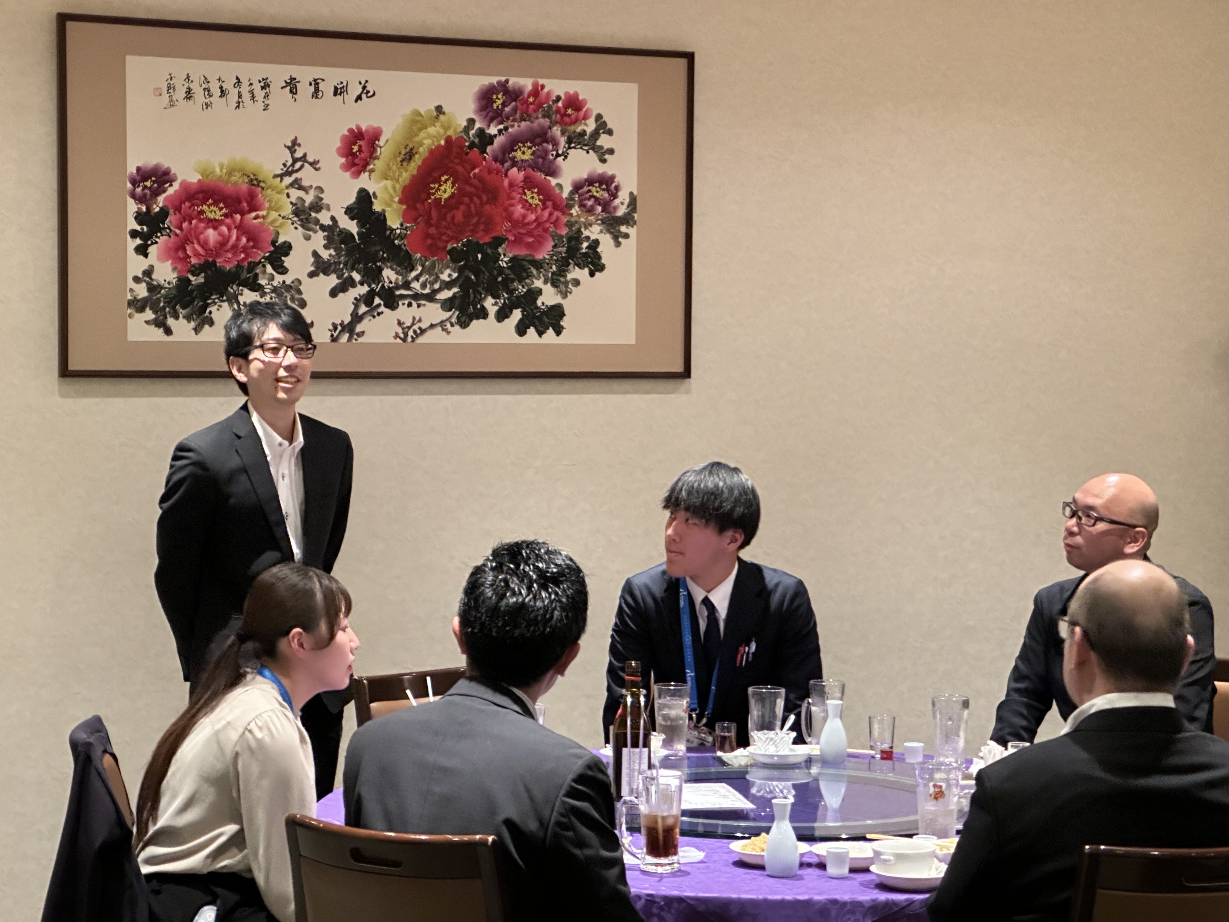 会議後は『湖苑』にて懇親会を行い自己紹介で発表した趣味の話など様々な話題で盛り上がり親交を深めることができました。
