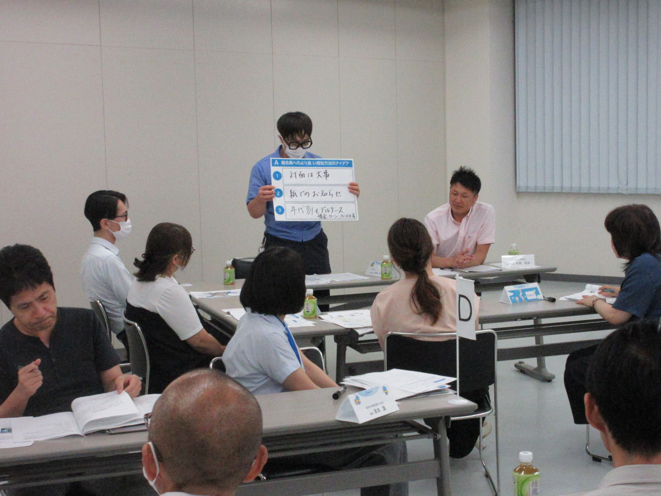 グループディスカッションでは、「組合員へのより良い周知方法のアイデア」について4グループに分かれて討議を行いました!特徴的な意見として、コロナ禍以降Webやメール、動画等が盛んな世の中ですが、組合員に情報を伝えるには、紙(チラシ)を直接(対面)お知らせする方が効果的であるといったご意見を提起いただきました!