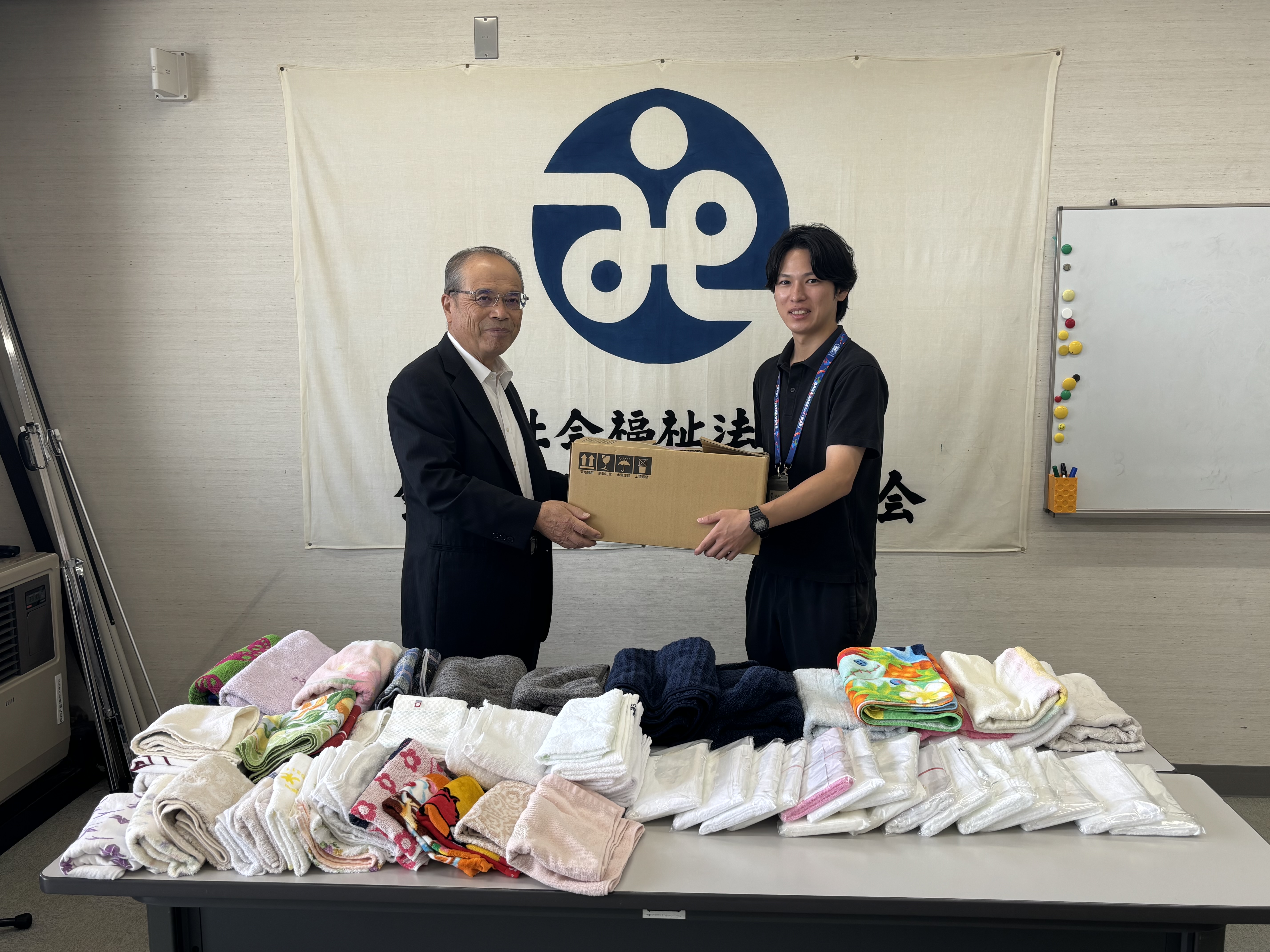 また、介護等で使用するためのタオルが不足し困っている団体に協力したいという想いから、未使用・使用済み問わず使わなくなったタオルの寄贈を各単組へ呼びかけていただきました。